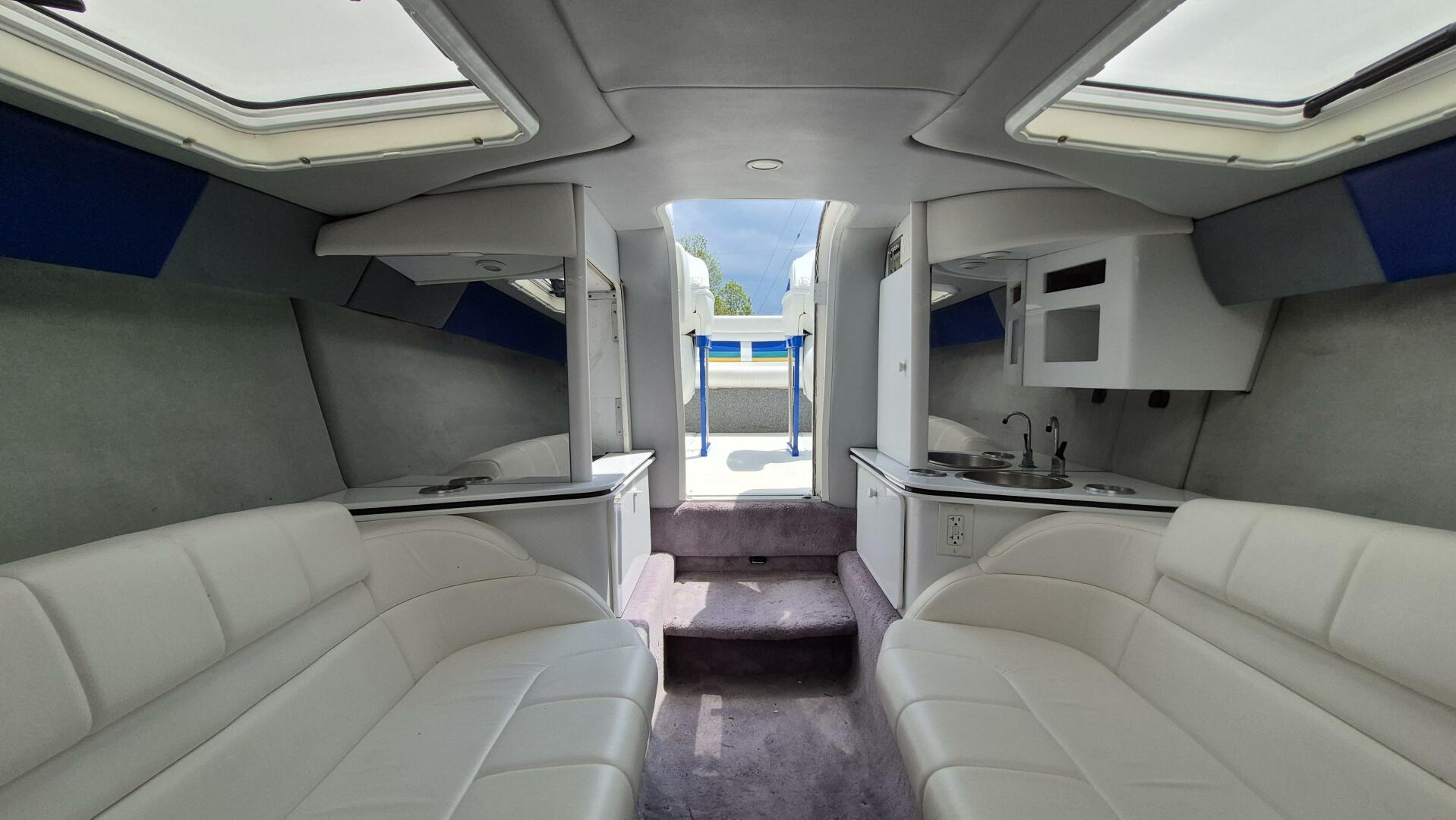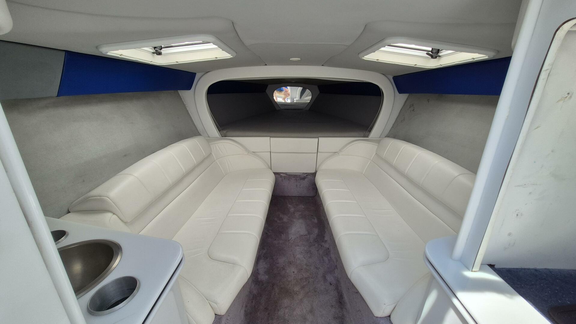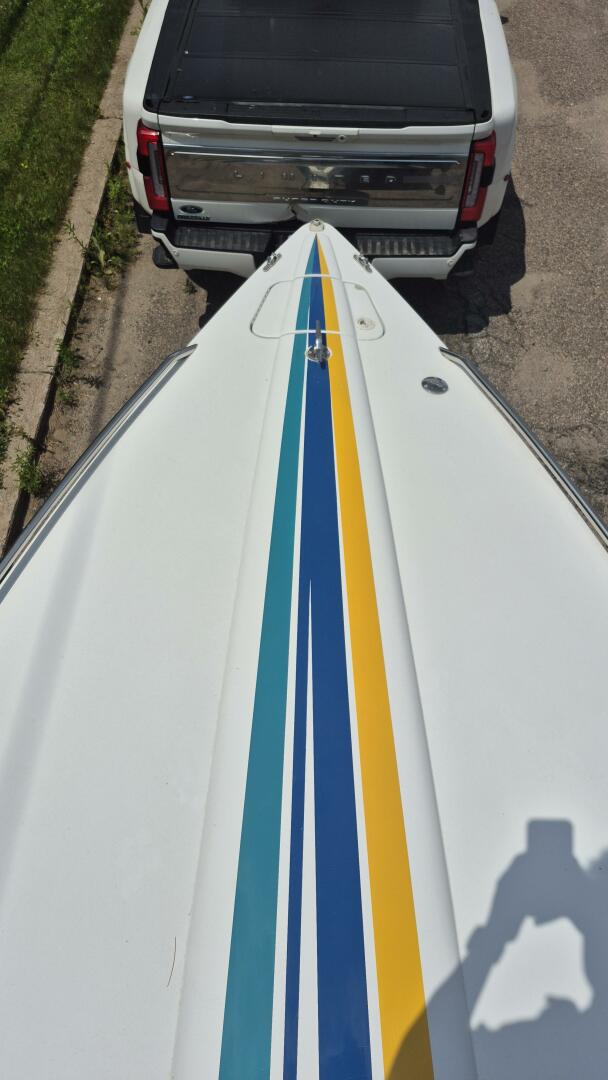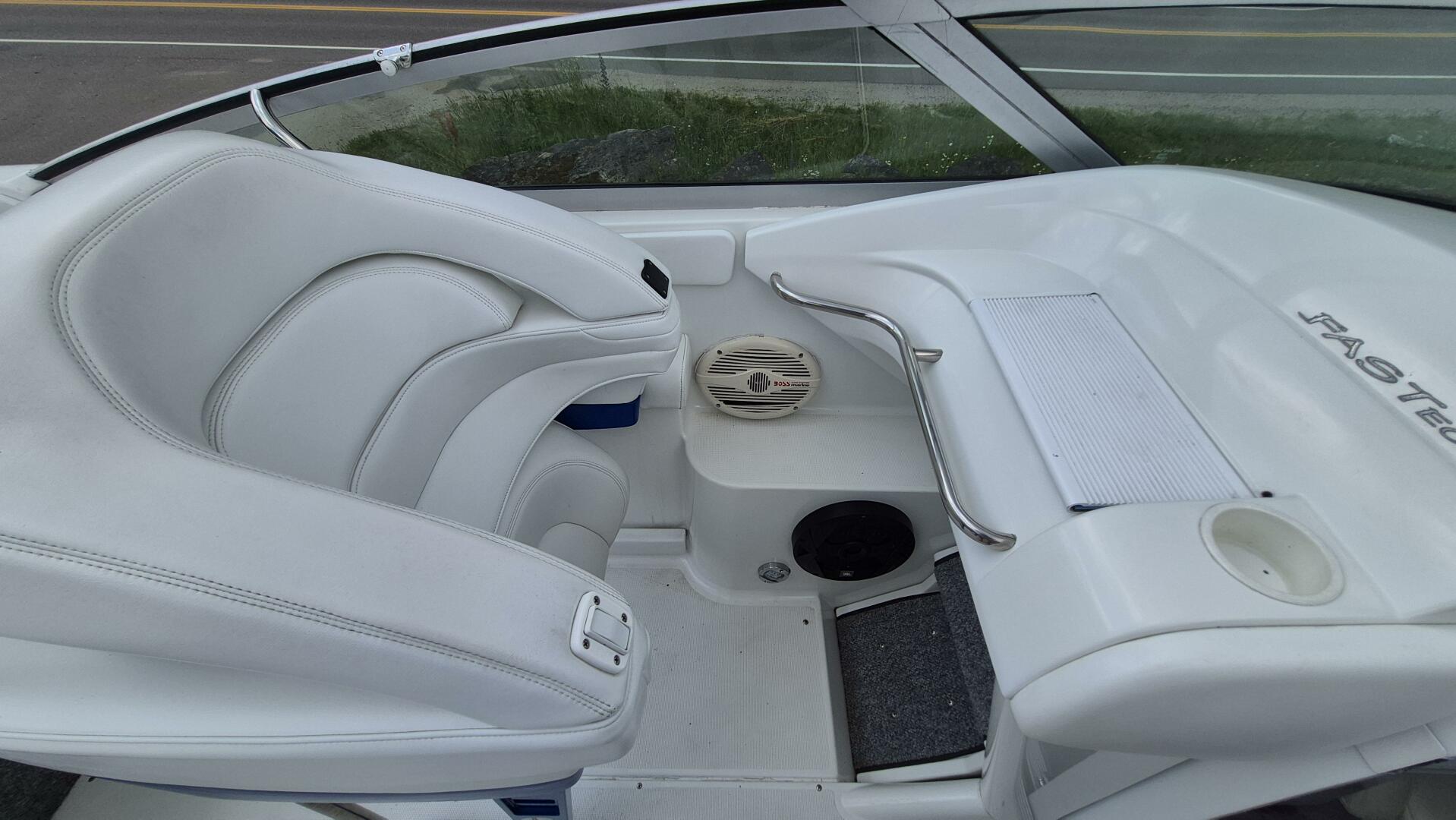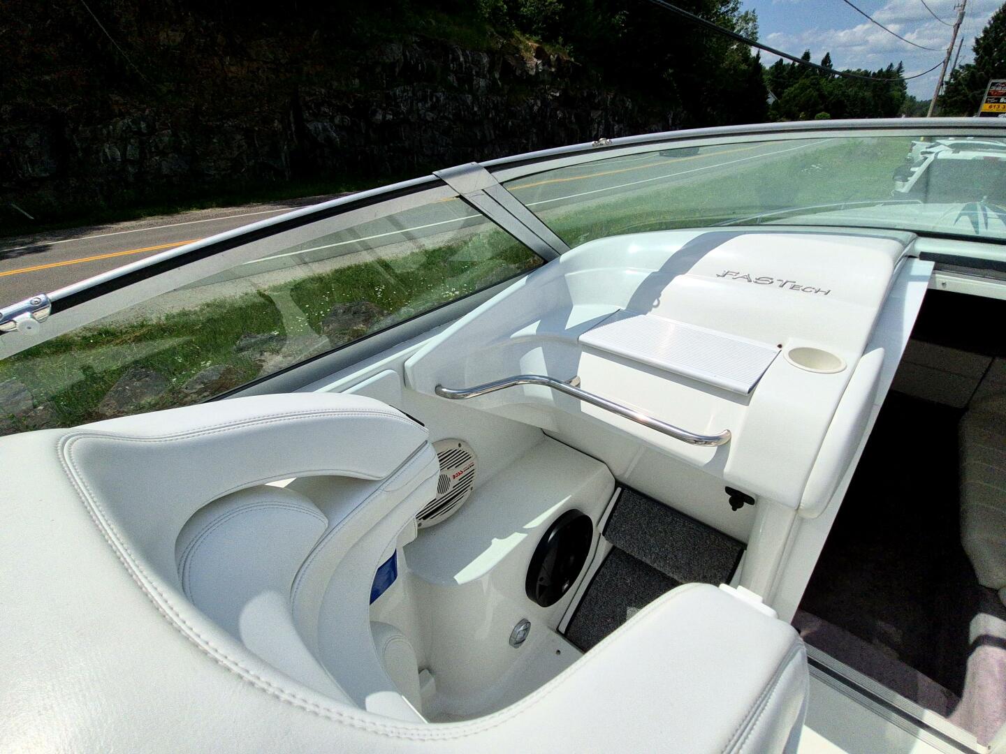 Down below, the 312 Fastech offers a surprisingly comfortable cuddy cabin for overnights or relaxing out of the sun. Salon seating, a V-berth sleeper, and a hidden porta potty provides essential convenience. A custom triple axle trailer is included, making it easy to haul this performance machine to your favorite waterways. Turn the key and experience Formula’s legendary blend of performance and luxury with this sleek Fastech!