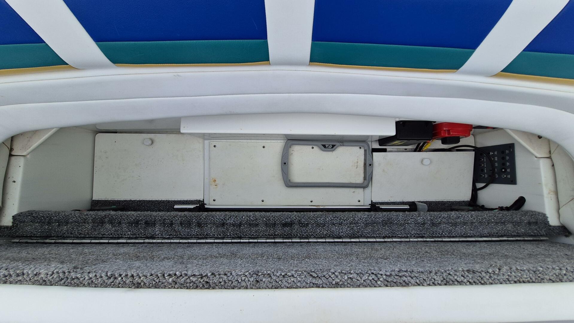 The cockpit layout is designed for both excitement and comfort, featuring drop-down bolster seats, a roomy rear bench, and a spacious sunpad perfect for soaking up rays. Color-matched accents add a custom feel throughout, from the helm’s tilt wheel and Gaffrig gauges to stylish cupholders. Removable cockpit carpet makes cleaning easy after a day of fun. Upgraded Garmin GPS at the helm ensures you stay on course during your high-speed adventures.