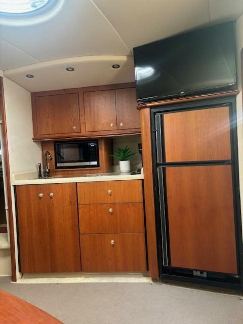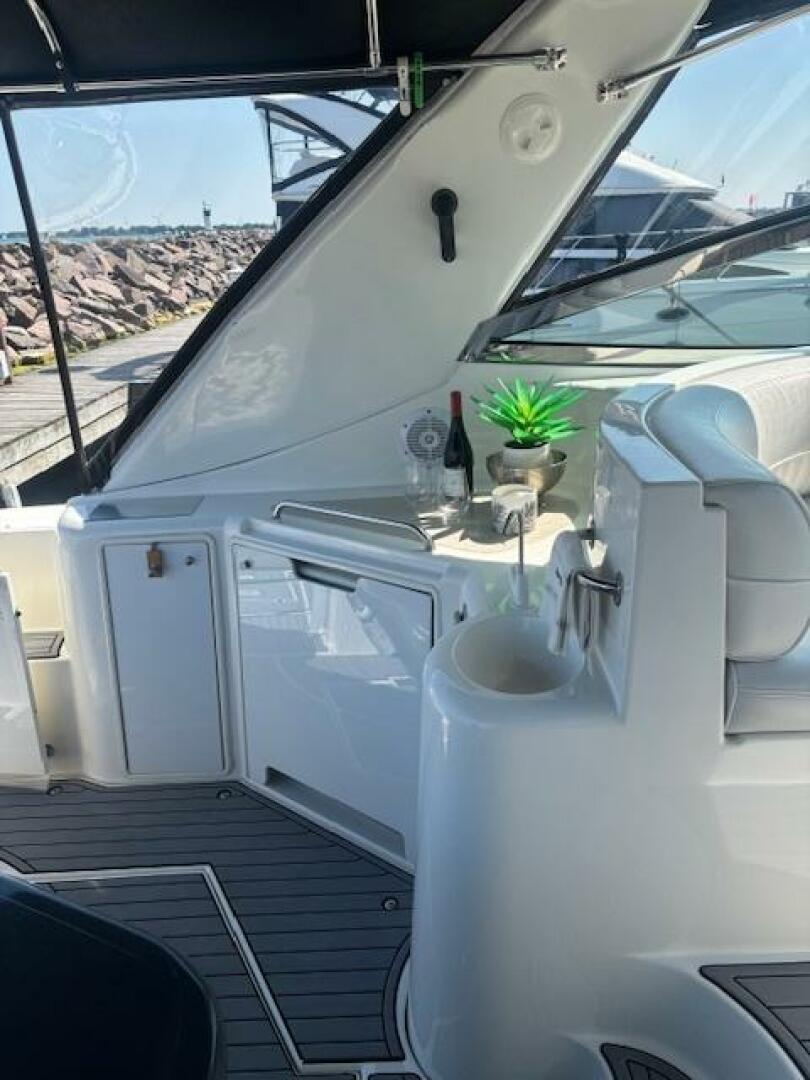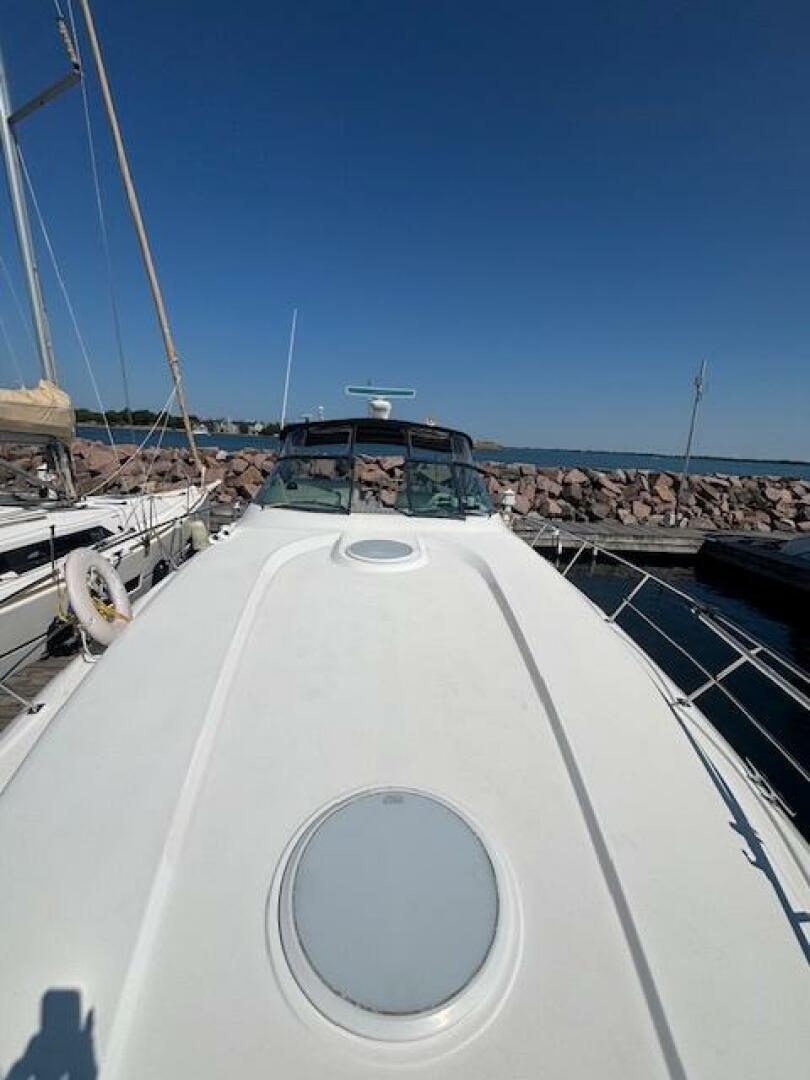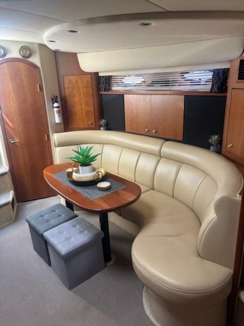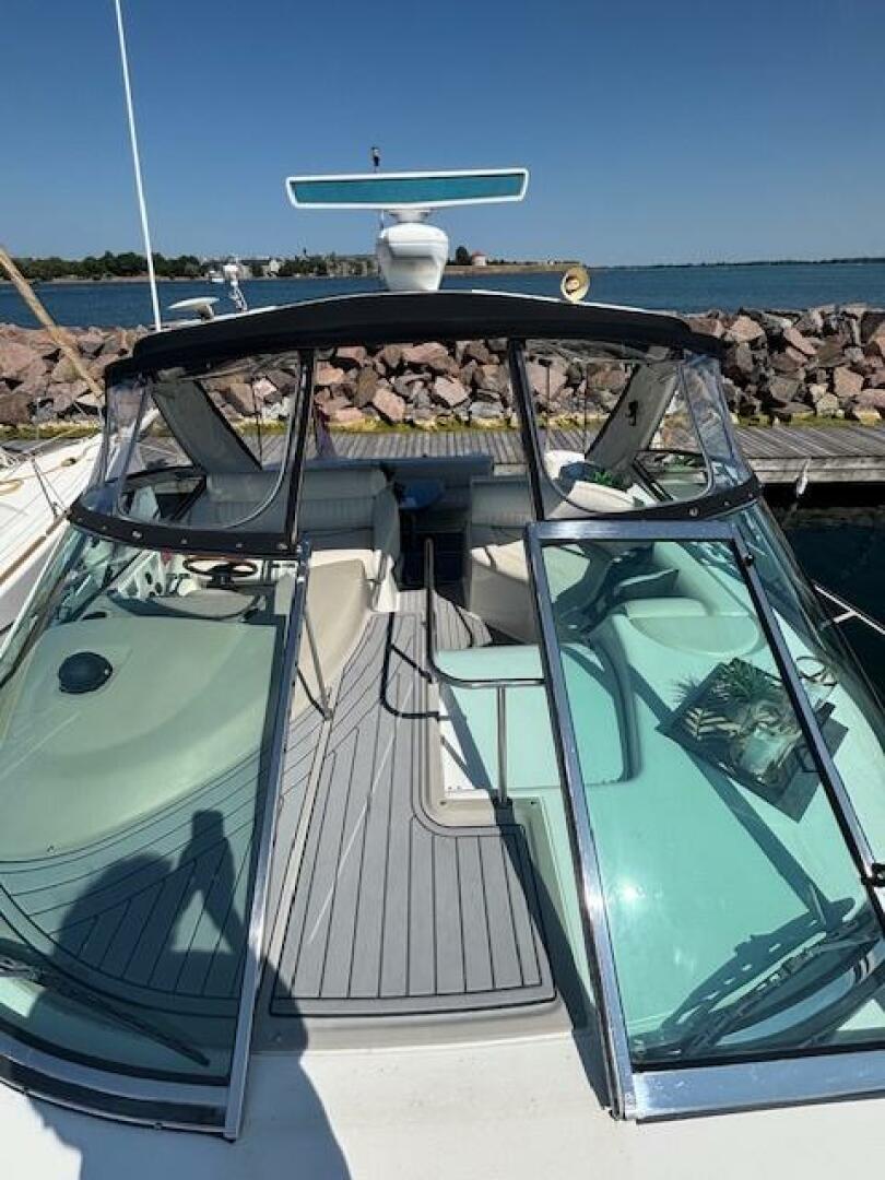 This 2001 Cruisers 3870 Express offers a practical layout and the right features for comfortable time on the water. The cockpit has plenty of seating for guests, a wet bar, and new aft canvas for protection when needed. Down below, the salon has a functional galley, convertible dinette, and good natural light.