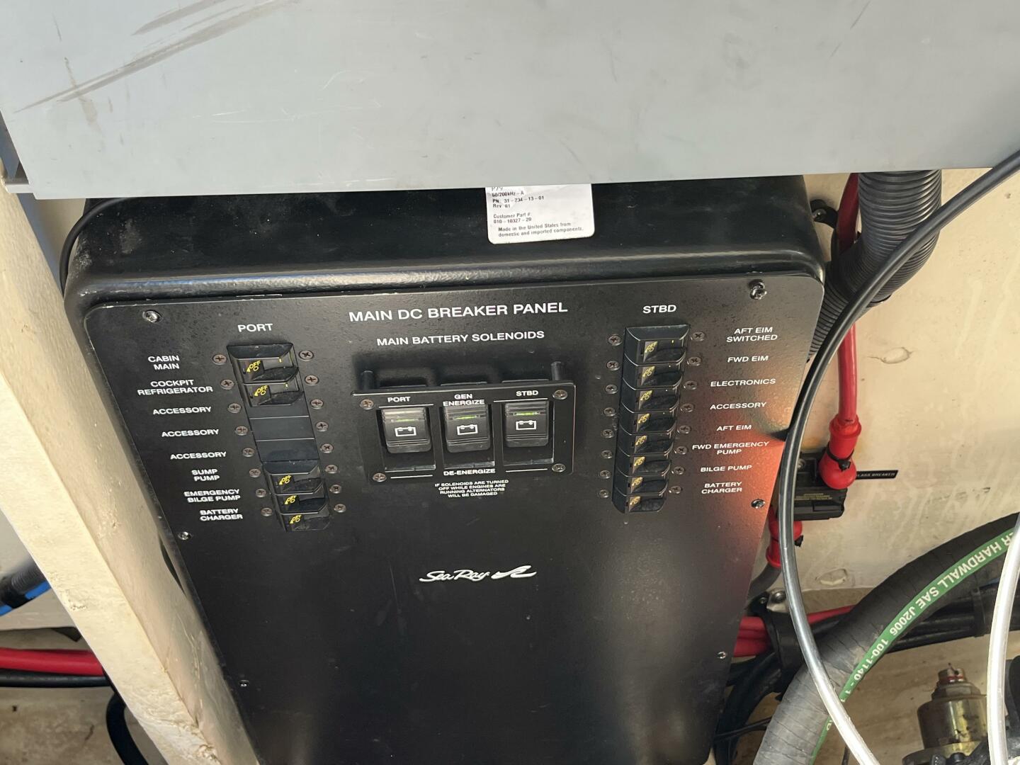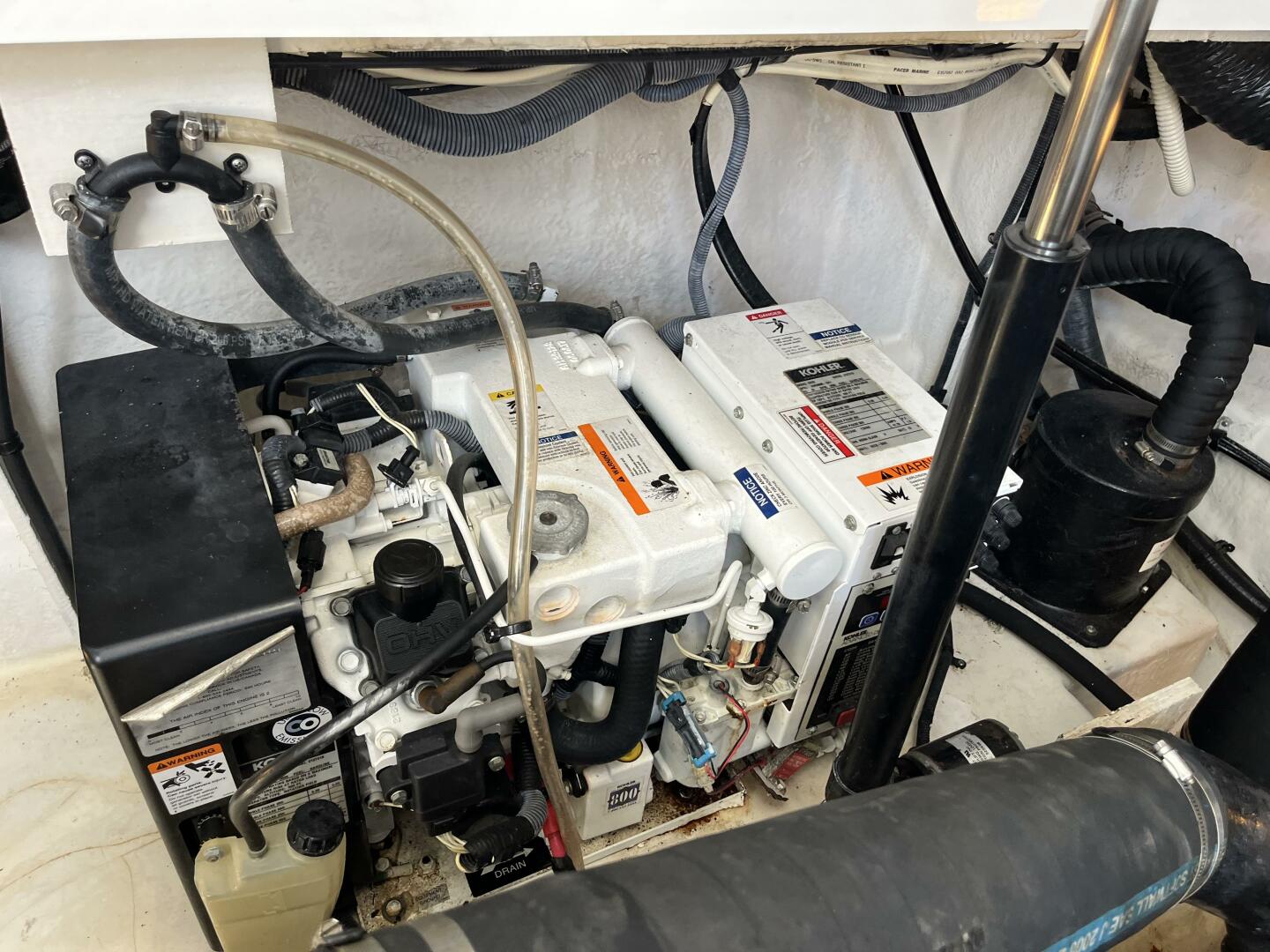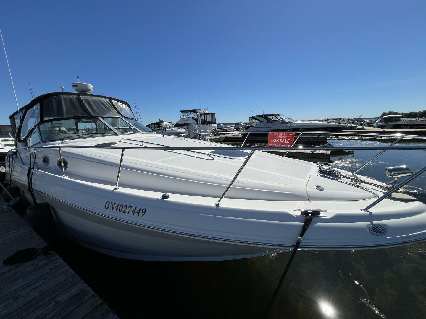 This Sundancer features a power lifting engine hatch providing access to the upgraded Twin MerCruiser Horizon 8.1L (496 cubic inch) gasoline engines with approximately 825 hours.